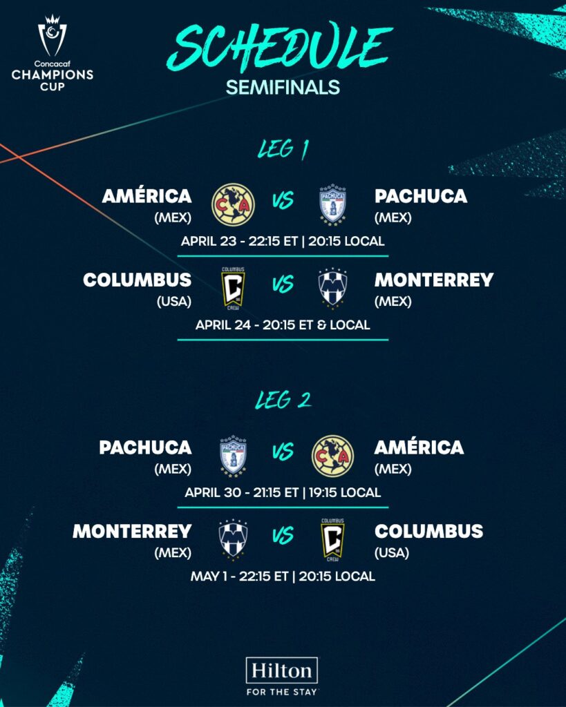 La semifinal de ida entre América y Pachuca abrirá el telón en el Estadio Azteca el próximo 23 de abril a las 20:15 hrs, mientras que el partido de vuelta se jugará el 30 de abril a las 21:15 hrs.