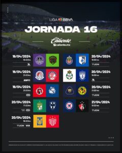 Calendario Jornada 16 Liga Mx C2024