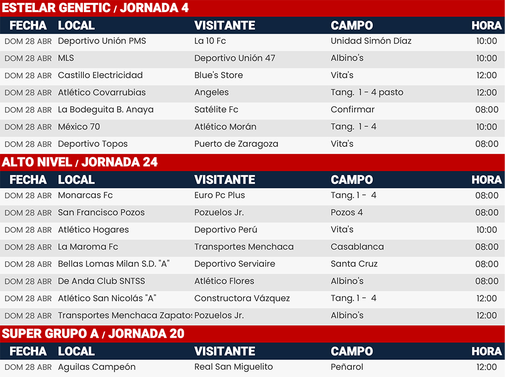 Rol de juegos 27 y 28 de abril 2024, Liga Central