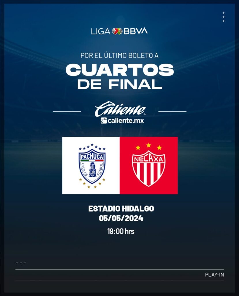 Solamente queda un boleto para definir a los 8 equipos que jugarán la Liguilla del Clausura 2024 luego de que Pumas venciera a Pachuca en la primera ronda del Play-In. El próximo domingo 5 de mayo, los Tuzos tendrán una nueva oportunidad para meterse a la fiesta grande del fútbol al recibir a Necaxa en el Estadio Hidalgo, duelo en que se definirá al último equipo invitado a los Cuartos de Final y que enfrentará a América.