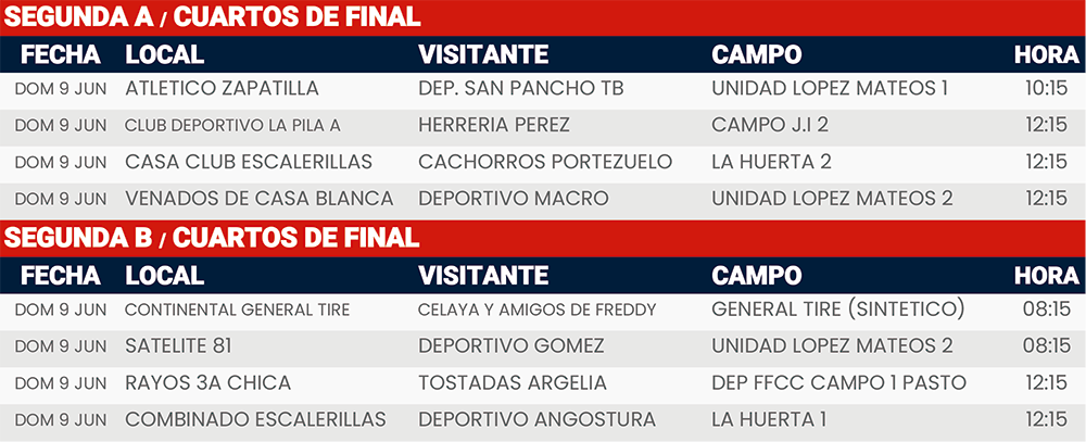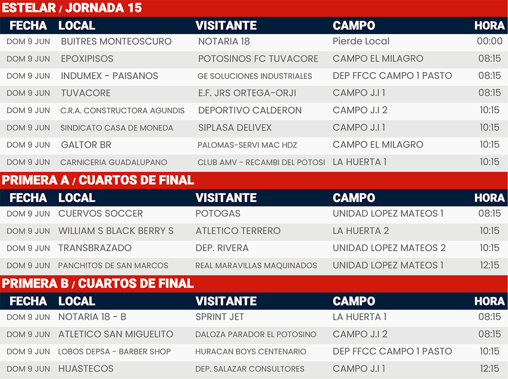 Rol de juegos Jornada 15 y Cuartos de Final Liga Tangamanga A2024