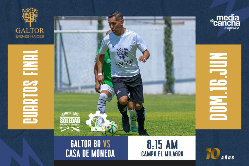 Partido de cuartos de final para este domingo para el equipo de Galtor, partido de matar o morir en donde los de las Bienes Raíces buscarán desde el primer minuto con gran convicción su pase a las semifinales, un duelo donde la concentración es primordial ya que no hay margen de error.