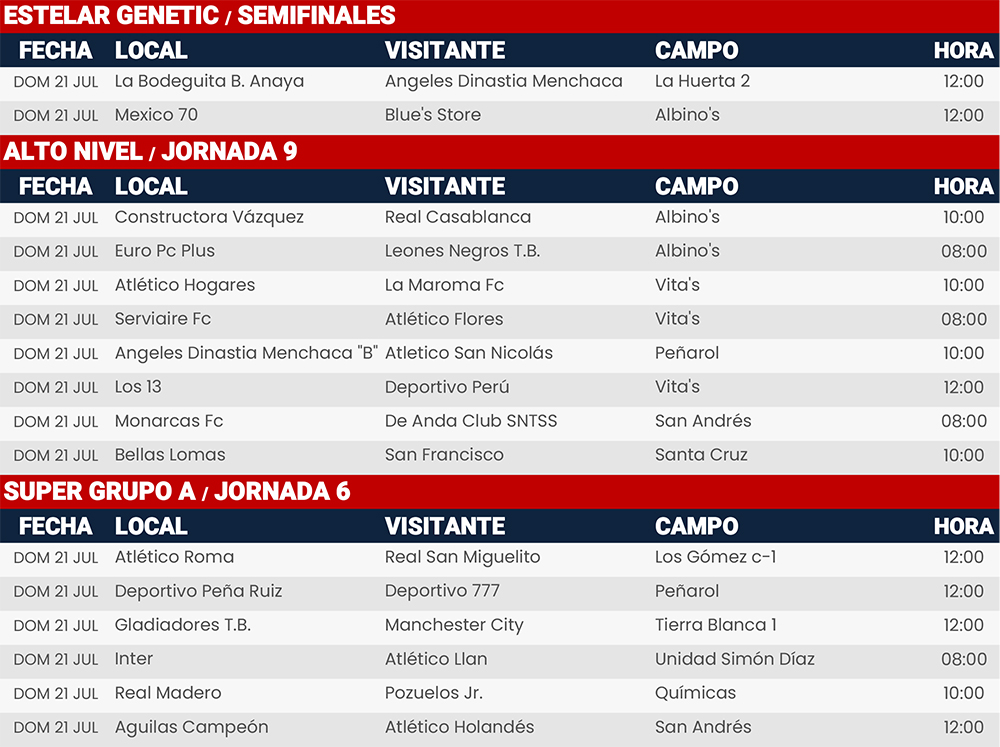 Rol de juegos 20 y 21 de julio 2024, Liga Central