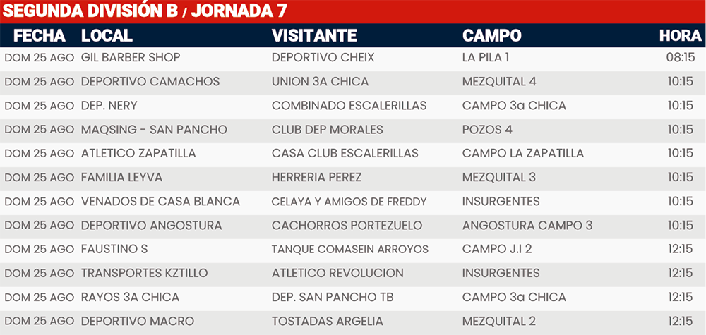 Rol de juegos Jornada 6 y 7 Liga Tangamanga C2024