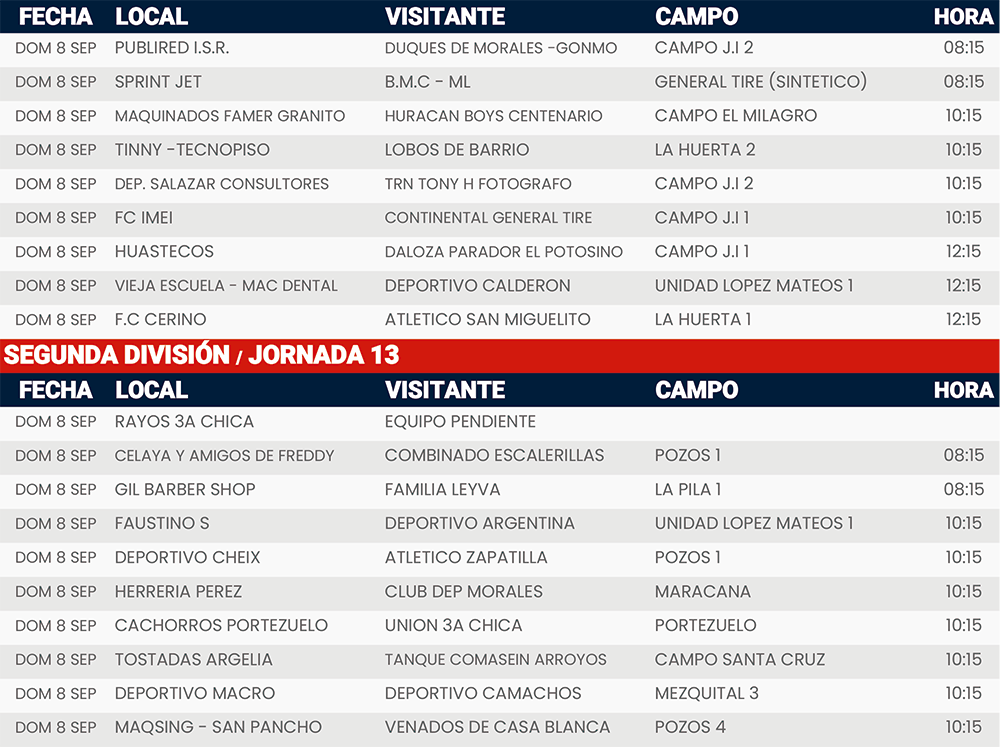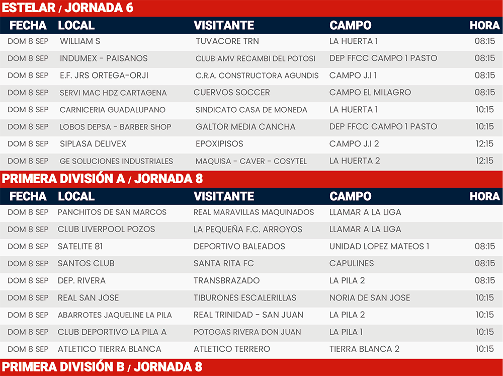Rol de juegos Jornada 6, 8 y 13 Liga Tangamanga C2024