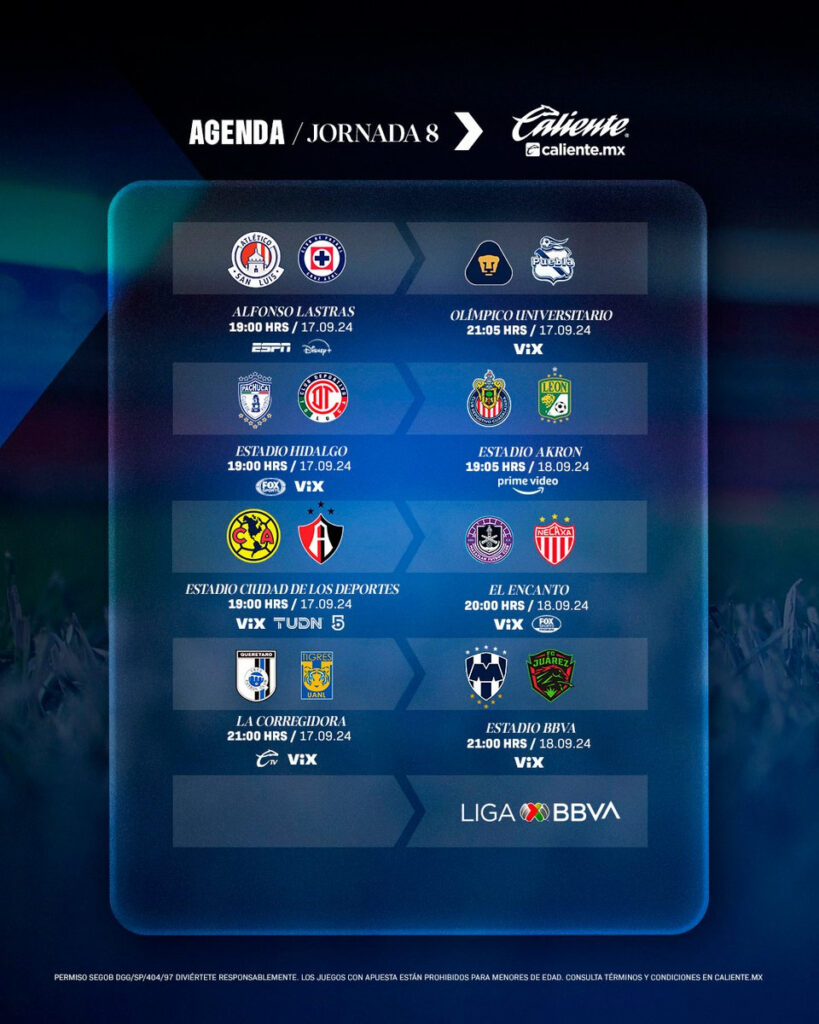 La Liga MX no se detiene y esta semana hay jornada doble con las acciones de la jornada 8. Después de siete jornadas, hay dos equipos (León y Querétaro) que todavía no conocen la victoria en este torneo, y hay tres otros clubes que se mantienen como los únicos invictos (Cruz Azul, Toluca y Tigres).