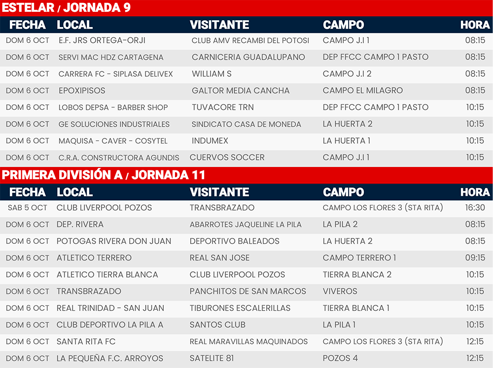 Rol de juegos Jornada 9, 11 y 17 Liga Tangamanga C2024