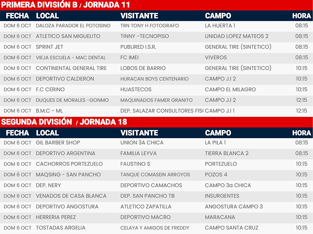 Rol de juegos Jornada 10, 12 y 19 Liga Tangamanga C2024