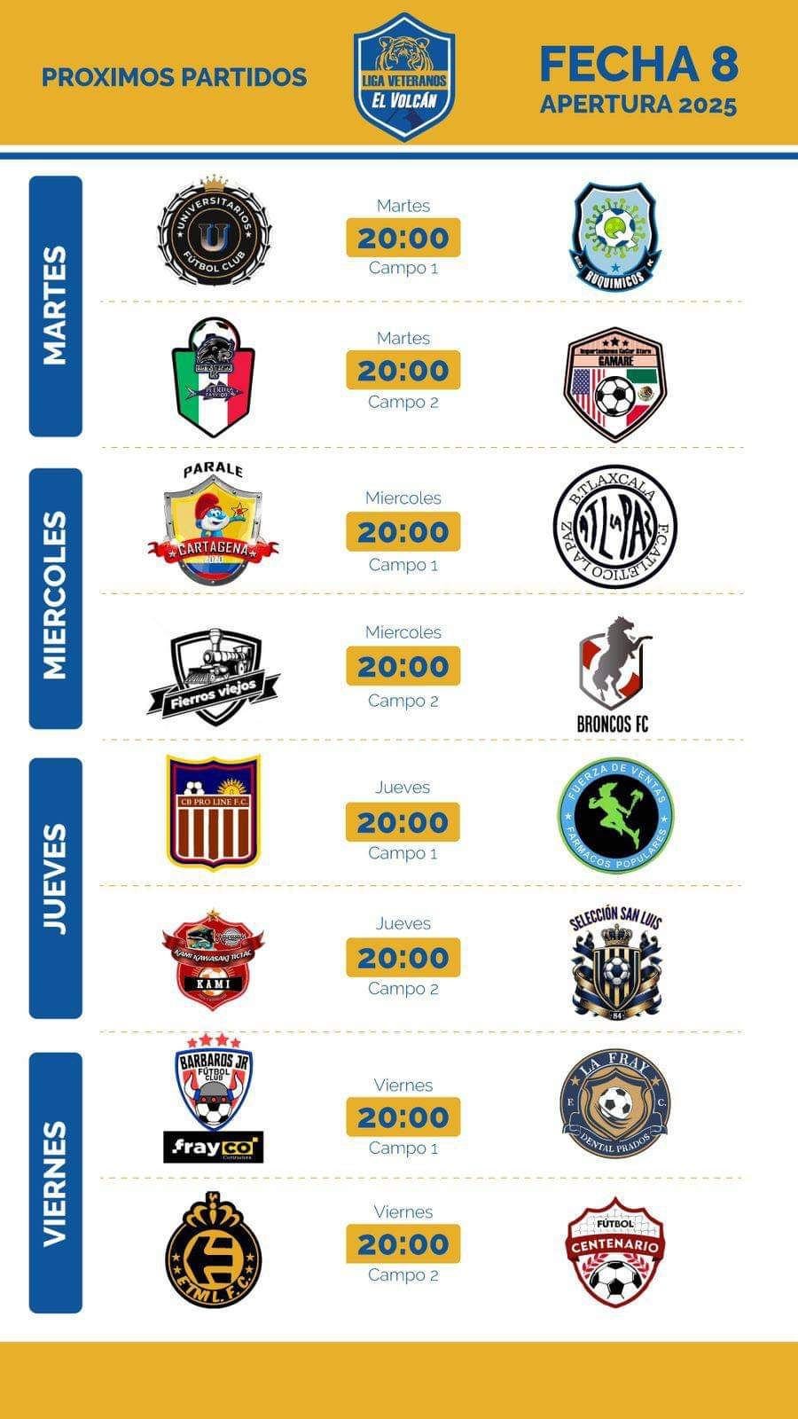 Rol de juegos Jornada 8, Liga Veteranos El Volcán A2025