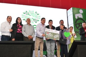 Entrega Ricardo Gallardo tarjetas de transporte público gratuito.