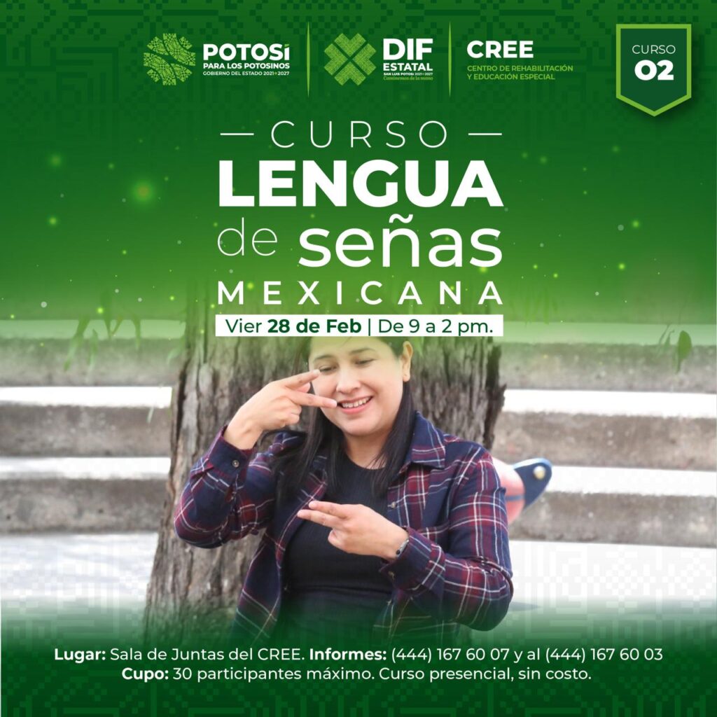 Como parte del compromiso del Sistema Estatal para el Desarrollo Integral de la Familia (DIF) de brindar atención integral a la población con discapacidad auditiva, el Centro de Rehabilitación y Educación Especial (CREE), pone al alcance de la población un nuevo curso de Lengua de Señas Mexicana para las y los interesados en este sistema de comunicación no verbal, completamente gratuito.