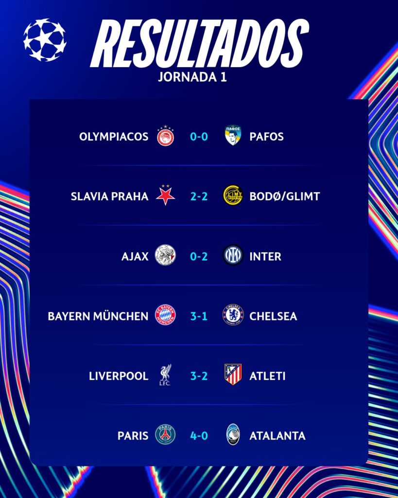 Resultados Jornada 1 Champions League 2025, 16 de septiembre
