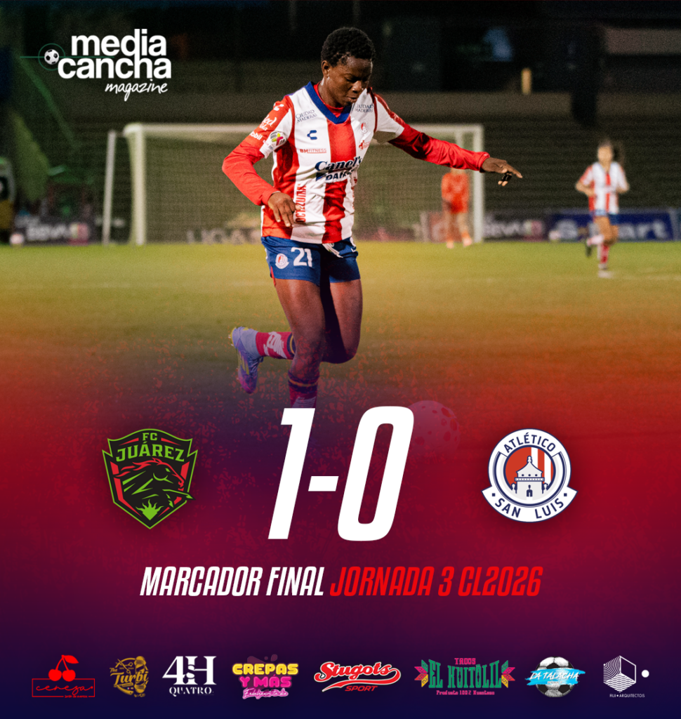 En la tercera jornada del Clausura 2026, Atlético de San Luis Femenil cayó por la mínima diferencia ante FC Juárez en un encuentro disputado en el Estadio Olímpico Benito Juárez.