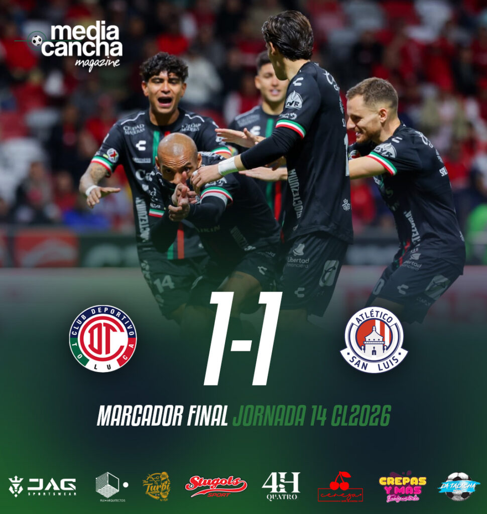 En la jornada 14 del Clausura 2026, el Atlético de San Luis rescató el empate 1-1 ante Deportivo Toluca, gracias a una anotación de penal en los minutos finales por conducto de João Pedro.